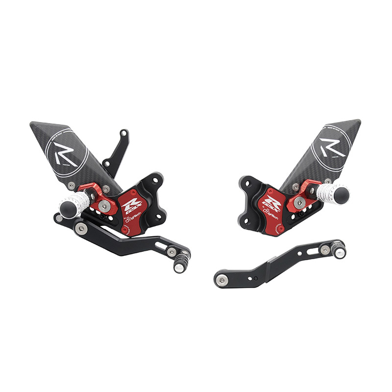Per tutti i modelli di pedane Track-System, LighTech è lieta di presentarvi la versione “R”! Questa versione speciale è il top in fatto di pedane regolabili: – paratacchi in carbonio a trama rossa con logo “R” rosso – poggiapiedi e puntalini pieghevoli – cuscinetti SKF ad alta scorrevolezza – viteria principale in titanio grado-5 – supporti poggiapiede di colore rosso Tutto questo per ottenere il massimo feeling del pilota col proprio mezzo e la massima precisione durante gli spostamenti sulla sella ed i rapidi cambi marcia e per offrire non solo elevati contenuti tecnici ma anche un look assolutamente unico e molto ricercato, in grado di caratterizzare l’estetica della moto rendendola molto più attraente. LighTech fornisce tutti ricambi per un eventuale ripristino delle pedane in caso di caduta o di smarrimento di qualche componente.